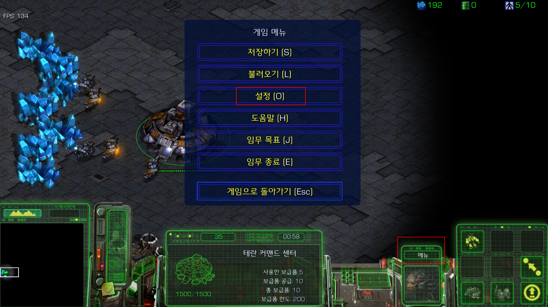 스타크래프트 리마스터 게임 화면에서 메뉴나 F10을 눌러 게임메뉴 화면을 띄웁니다.