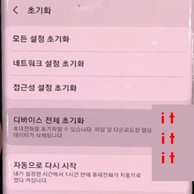 이렇게 해주면 일반모드에서 공장초기화 하기 위한 작업이 다 이루어진 겁니다.