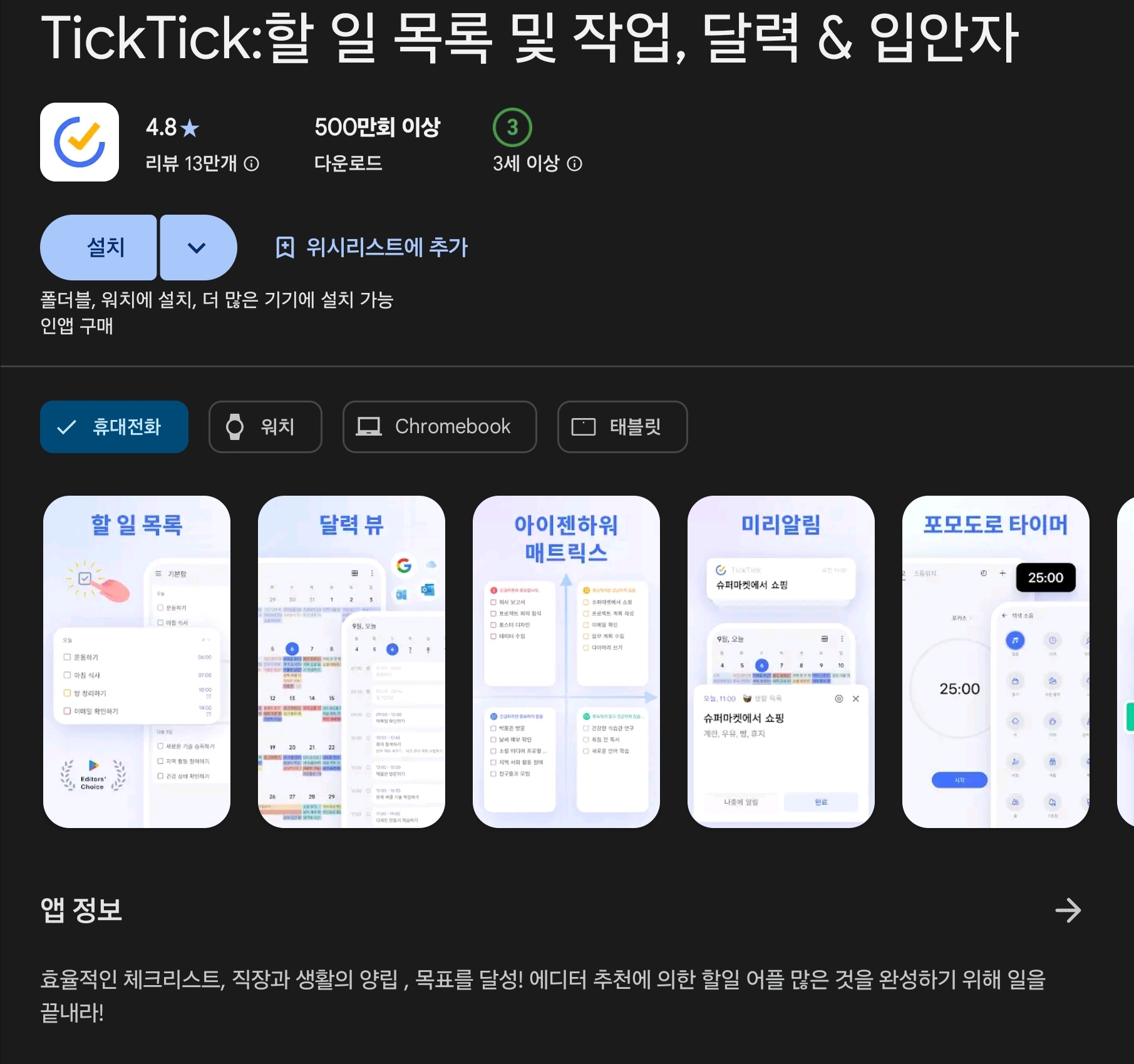 5. Tick Tick - 할 일과 타이머에 진심인 올인원 앱입니다.