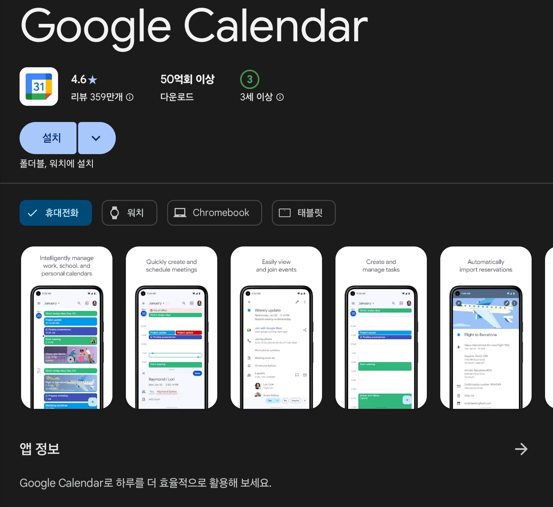사용 후기 : 회의나 약속 할일에 대해 자동 등록 기능이 있어 약속을 놓치는 경우가 없습니다.