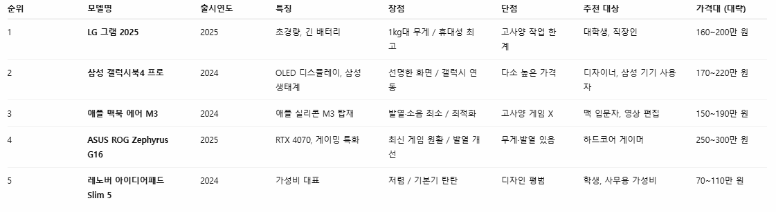 1. LG 그램 2025 - 사무용 최강자입니다.